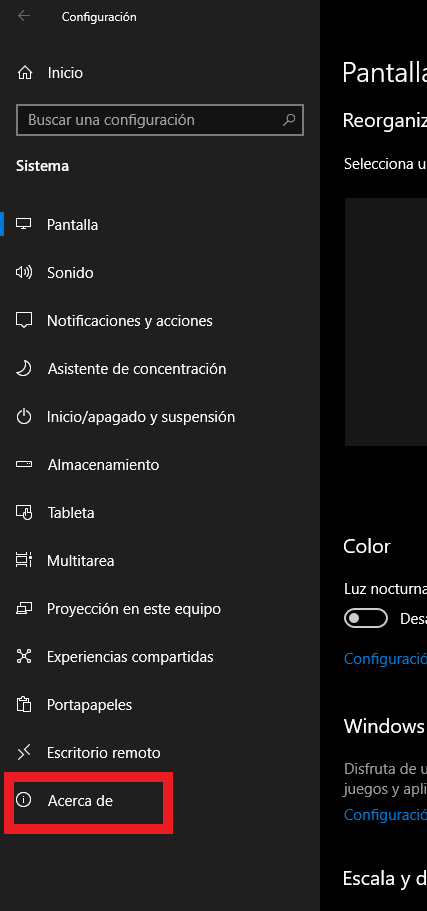 - Ahora en el menú del lateral derecho, selecciona la opción Acerca de